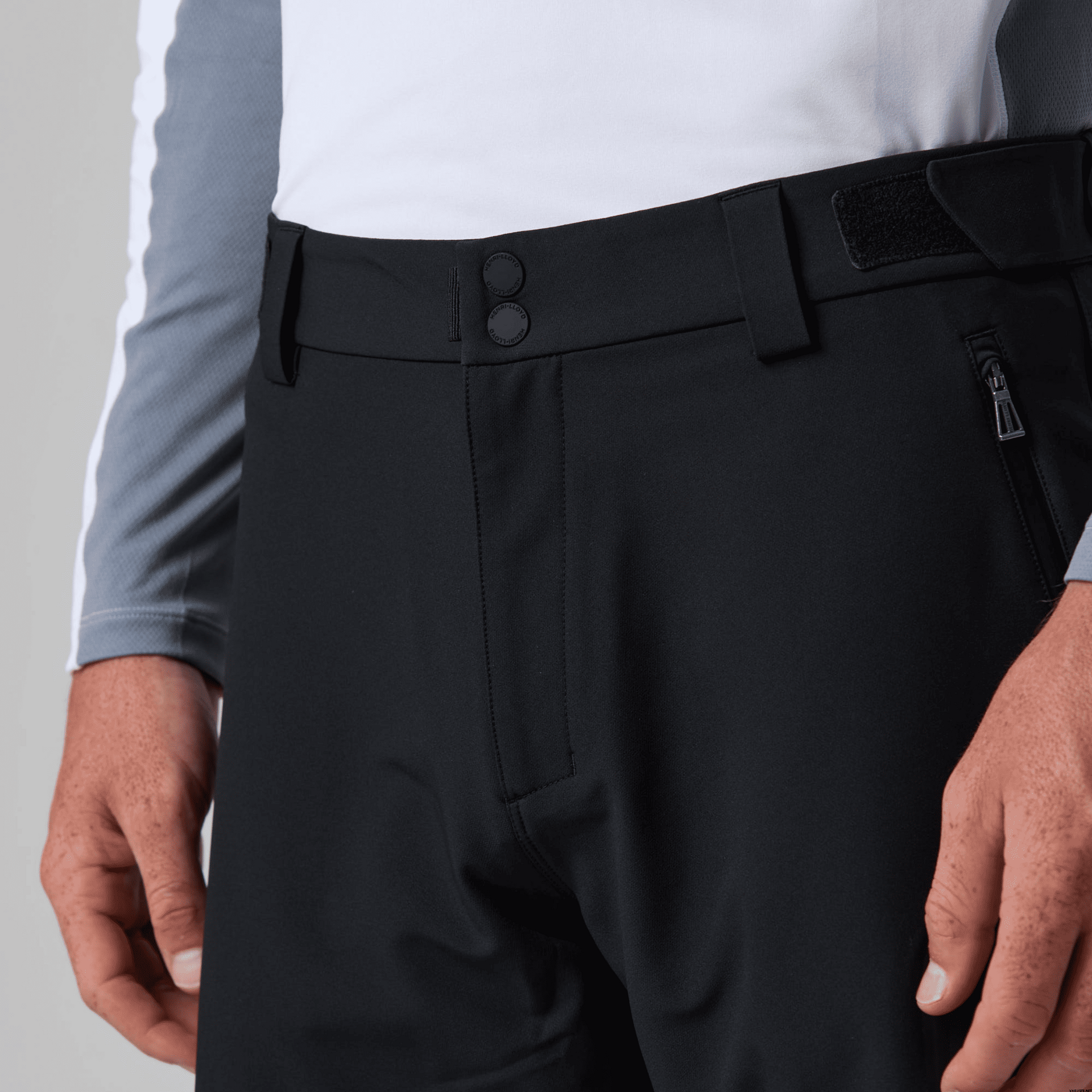 - Regulowana talia z elastycznymi paskami na rzepy i podwójnym zapięciem na zatrzaski dla lepszego dopasowania