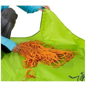 Simple, functional rope bag with integrated tarp and a unique loading system that makes it easy to pack the rope into the main compartment for fast easy transport between climbs.