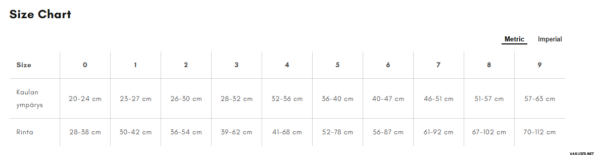 | 9 | 58-64 cm |