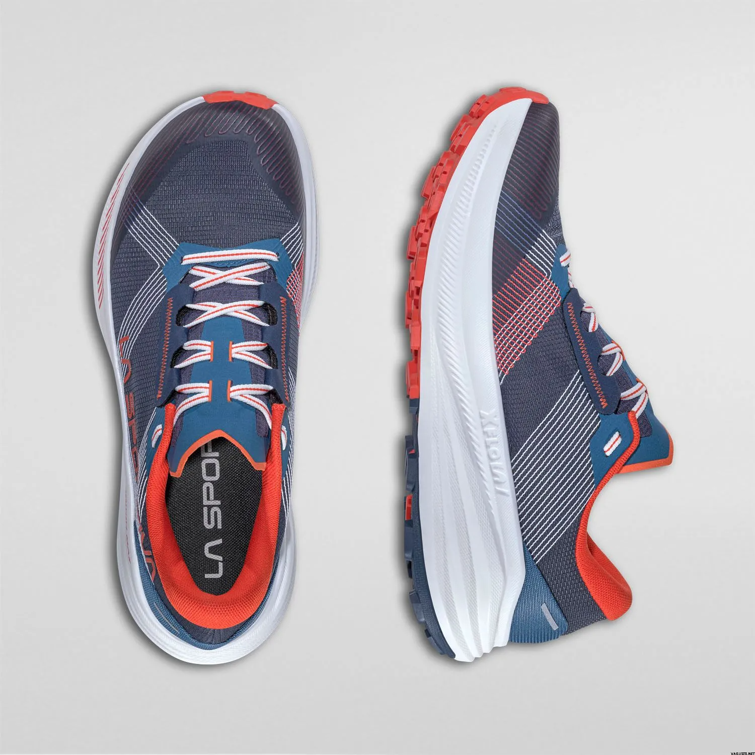 La Sportiva Prodigio Max Mens sunt pantofi de alergare montană avansați pentru bărbați, creați pentru pasionații de ultra-distanțe. Acești pantofi oferă o amortizare, confort și stabilitate excepționale, fiind perfecți pentru abordarea traseelor montane dificile și a curselor de lungă distanță, precum Tor Des Geants și Swiss Peak. Concepuți cu o abordare modernă, aceștia asigură o potrivire confortabilă pentru purtare prelungită.