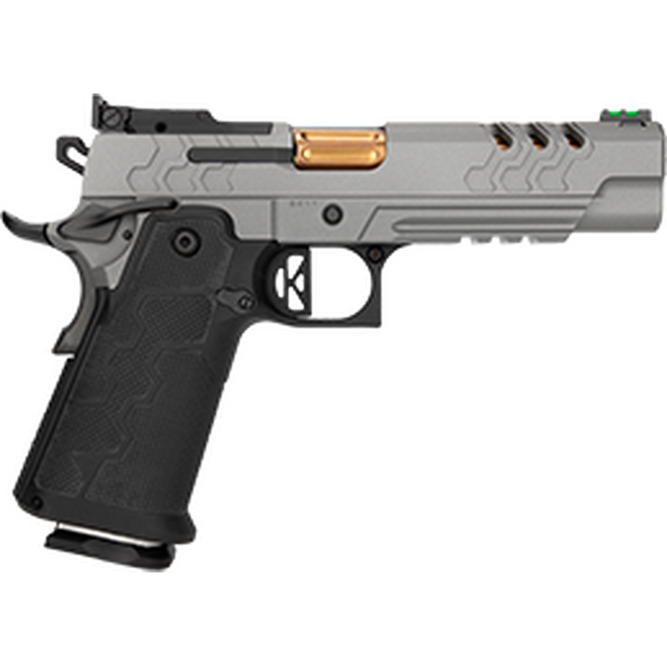 Kimber 2K11 Stainless Target (OR) este un vârf de gamă al pistoalelor 1911 de mare capacitate, concepute pentru a satisface cerințele entuziaștilor. Acest model dispune de un sub-cadru robust pentru o potrivire și un control optim al încărcătorului, completat de o culisantă din oțel inoxidabil cu un extractor extern pentru o fiabilitate sporită. Pistolul include o șină auxiliară pentru lumini și lasere, ceea ce îl face adaptabil pentru diverse utilizări. Țeava sa înclinată asigură o alimentare constantă, în timp ce mânerul din Kevlar și fibră de carbon oferă o rezistență excepțională și reflectă zimțaturile culisantei, demonstrând expertiza Kimber în designul modern al armelor de foc.