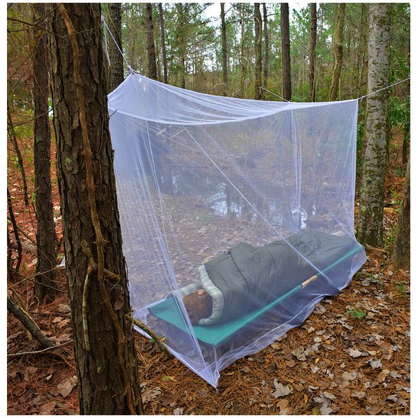 The Camp Mosquito Net is a rectangular net that features 6 suspension points and easily fits over cot(s) or sleeping bag(s).