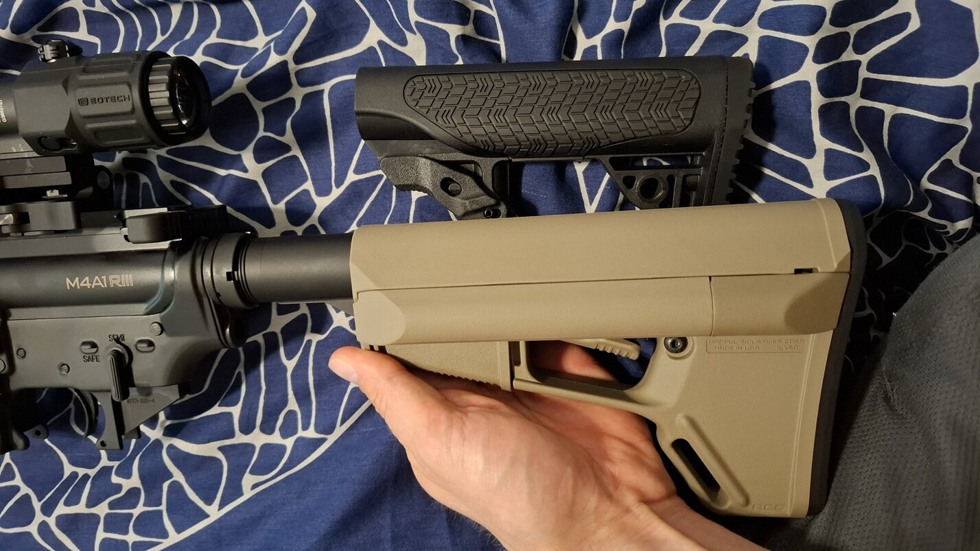 Запатентованный Magpul ACS (Adaptable Carbine/Storage) — модель Mil-Spec — сменный приклад для карабинов AR15/M16 с использованием удлинительных трубок ствольной коробки размера mil-spec. Обтекаемый профиль, препятствующий зацеплению, защищает защелку, предотвращая случайную активацию. Подобно Magpul CTR ® , ACS также имеет дополнительную систему блокировки трения, которая сводит к минимуму чрезмерное движение приклада для повышения стабильности и точности оружия *. Двойные водостойкие трубки для хранения батарей с доступом сзади и встроенный отсек для хранения в нижней части приклада обеспечивают несколько вариантов хранения. В стандартную комплектацию ACS входит резиновый затыльник приклада толщиной 0,30 дюйма, который обеспечивает надежное прилегание к плечу и предотвращает соскальзывание даже с бронежилетом или модульным снаряжением.