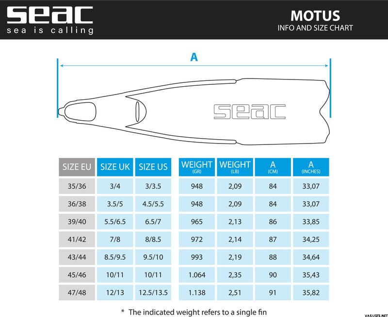 Длинные ласты Seac Motus пользуются популярностью среди фридайверов и подводных охотников, в том числе и среди новичков в этом виде спорта. Эти ласты имеют удобную фиксацию для стопы и разработаны для лёгкого гребка. Угол 22° между лопастью и фиксатором для стопы увеличивает тягу при минимальных усилиях, что делает их отличным выбором для подводных исследований.