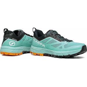 Perhaps the best all-around mountain shoe Scarpa has ever made, the Rapid lives at the junction of trail running and approach. This hybrid shoe is equally adept at ticking off trail miles, boulder hopping and scrambling moderate slabs. The all-synthetic upper is lightweight and highly breathable thanks to plenty of mesh, but reinforced in critical areas with welded PU to provide support and durability. The Sock-Fit LW construction snugly wraps the midfoot for a precise fit with reduced bulk. The dual-density EVA midsole delivers a ride more akin to a trail running shoe, but we have added a TPU arch insert for torsion control, and our Dynamic Protection System insert in the forefoot for increased protection, propulsion and edging capability. The Vibram® outsole features high-friction Megagrip rubber, and an edging zone under the big toe for unbeatable friction and traction. The Rapid is the perfect choice for moving fast over mixed mountain terrain, adept at handling all conditions from groomed single track to endless talus fields to slabby scrambles.