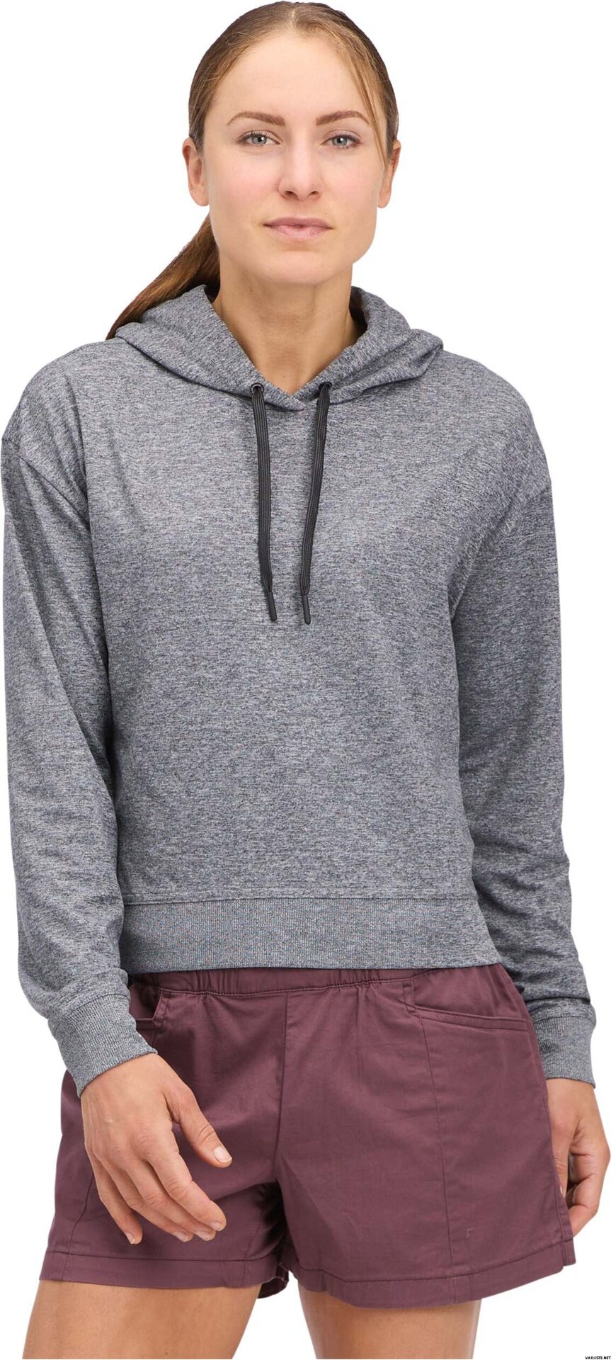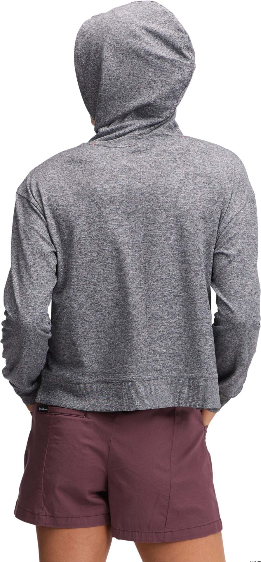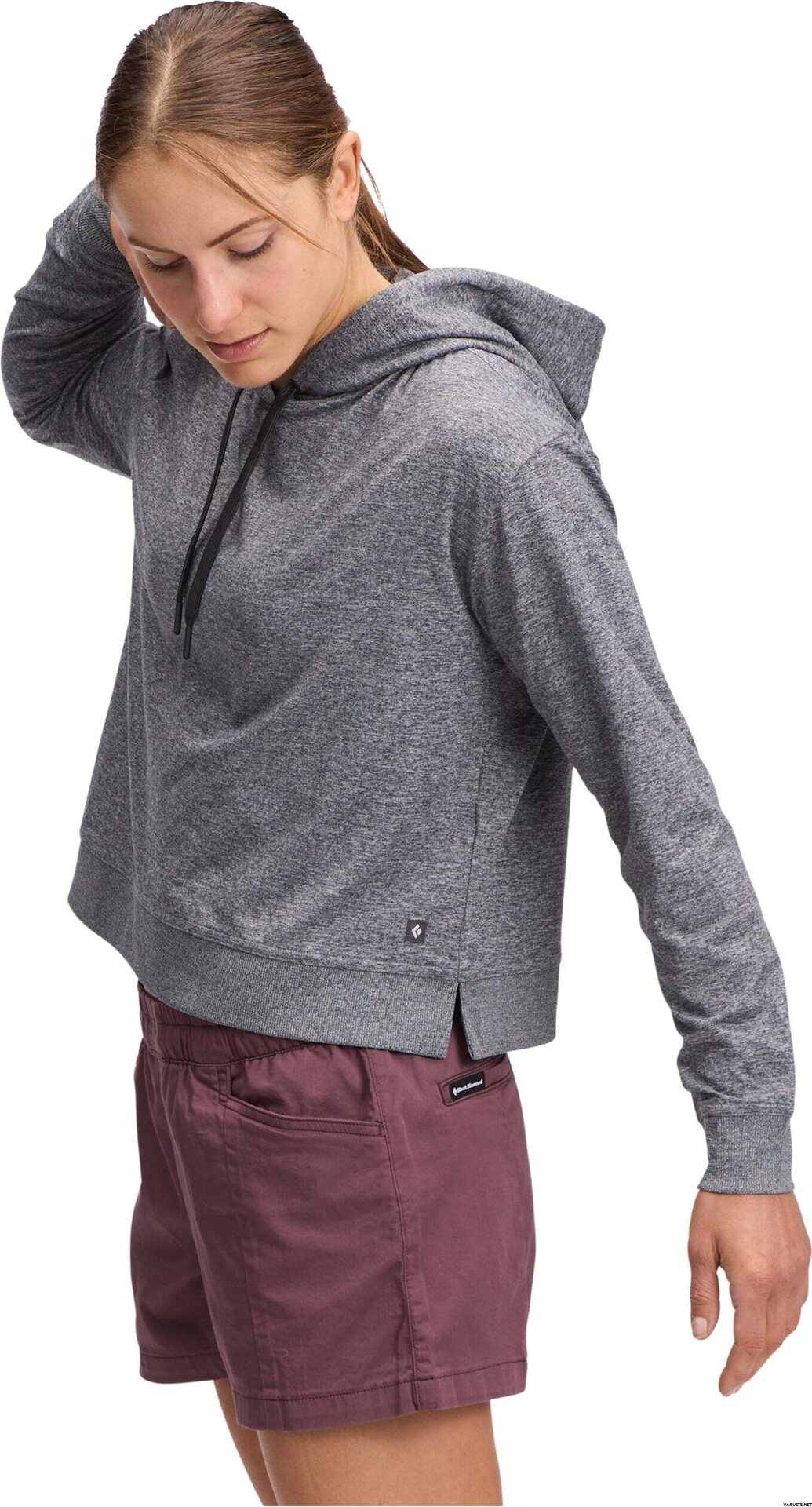 Dámske mikiny Black Diamond Circuit Midlayer Hoody ponúkajú zmes ľahkého pohodlia a štýlu, ideálne na letné popoludnia, bouldering v teplom počasí a rána v tábore. Táto stredná vrstva mikiny s kapucňou, vyrobená z recyklovaného polyesteru a elastanu, poskytuje mäkký dotyk a náznak roztiahnutia pre väčšie pohodlie. Jeho mierne skrátený dizajn, stiahnuté rukávy na ramenách a nastaviteľná kapucňa so sťahovacími šnúrkami dodávajú klasickému svetru módny nádych. Bočné rozparky na leme zaisťujú svieži a uvoľnený strih.