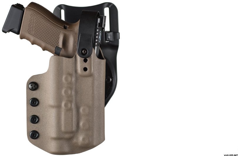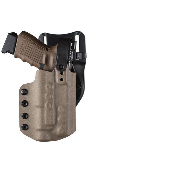 The Crestone L2 is set to accept most industry standard hangers to include Blade-Tech™, G-Code™ and Safariland™ attachments. This holster is made with a Blade-Tech WRS Level II Thumb break Retention System that includes a spring loaded activation system for quick employment.