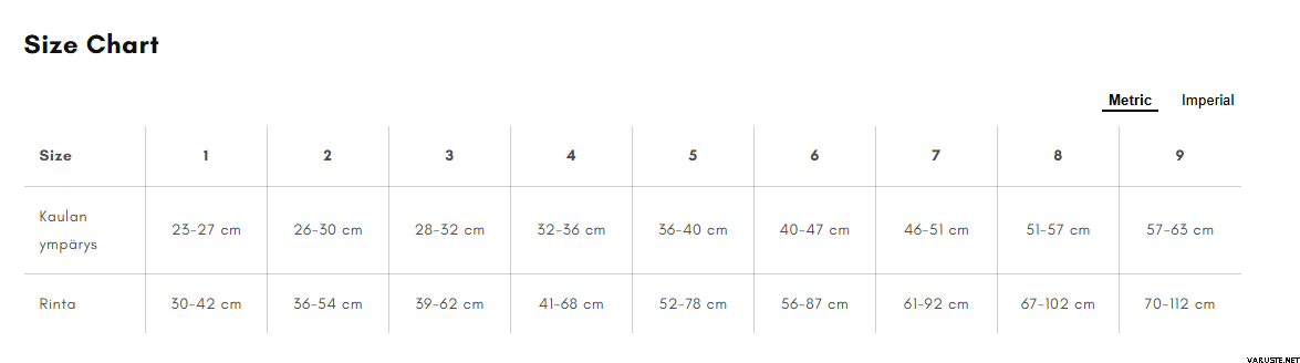 | Storlek | Halsens omkrets | Bröst |