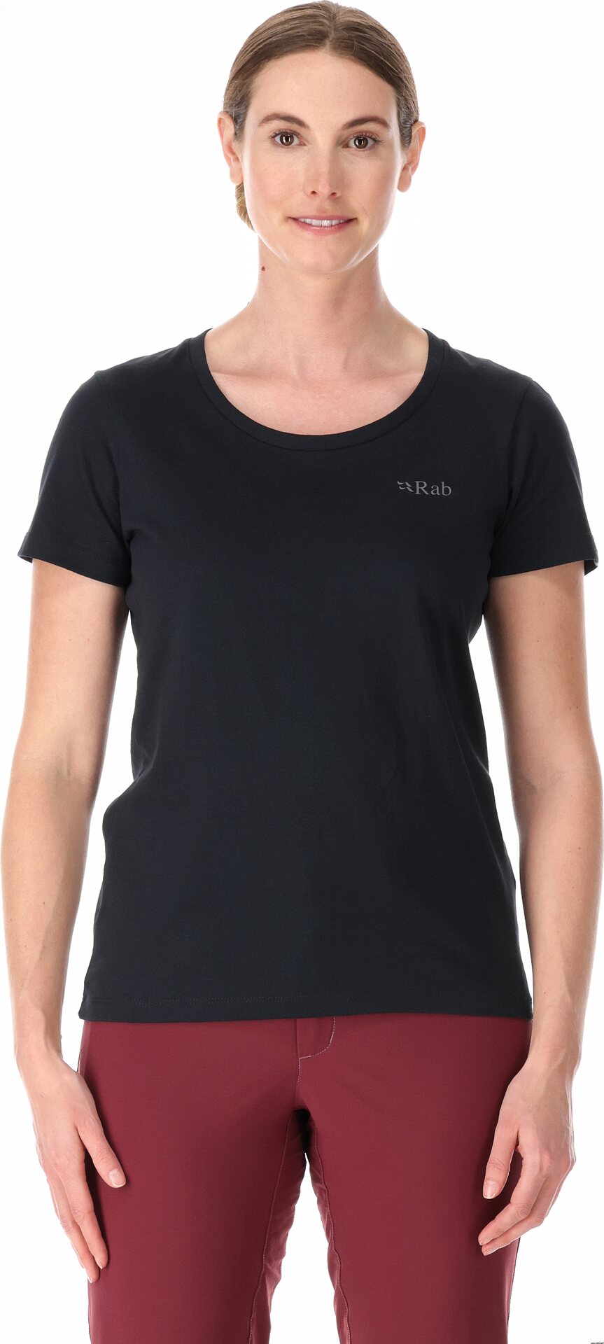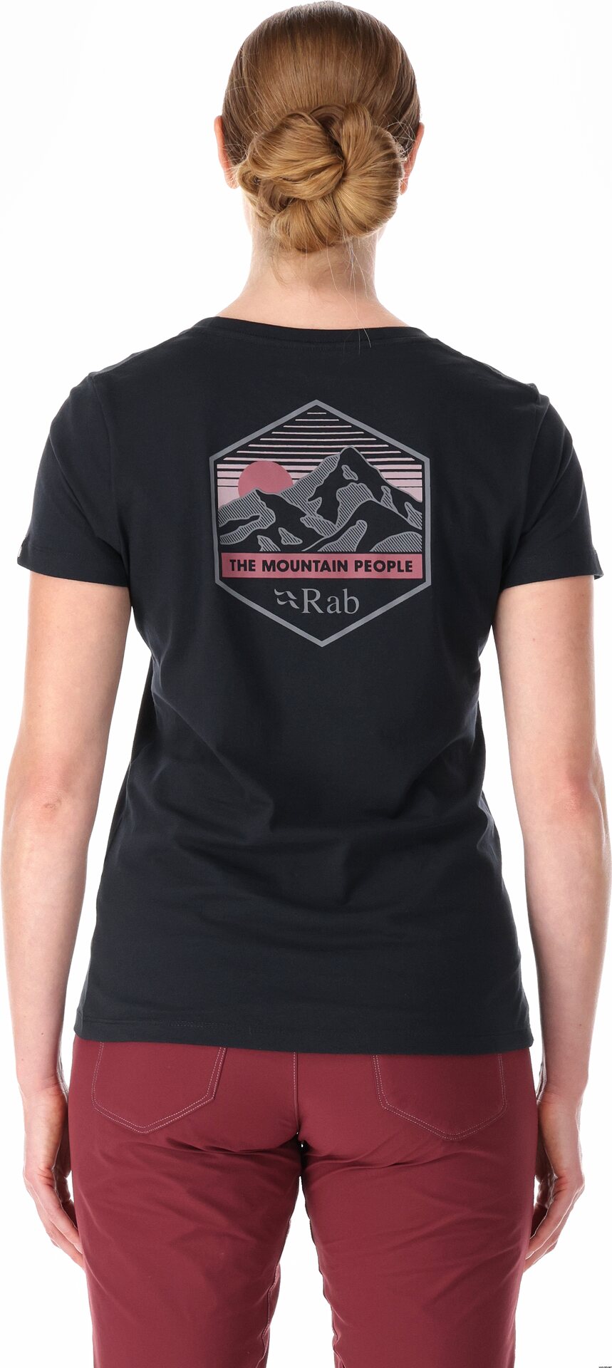 Soft, organic cotton, everyday tee with our mountain people graphic on the back. A comfy and soft classic tee made with 100% organic cotton. Clean and simple on the front, with RABs classic The Mountain People three peaks graphic on the back.