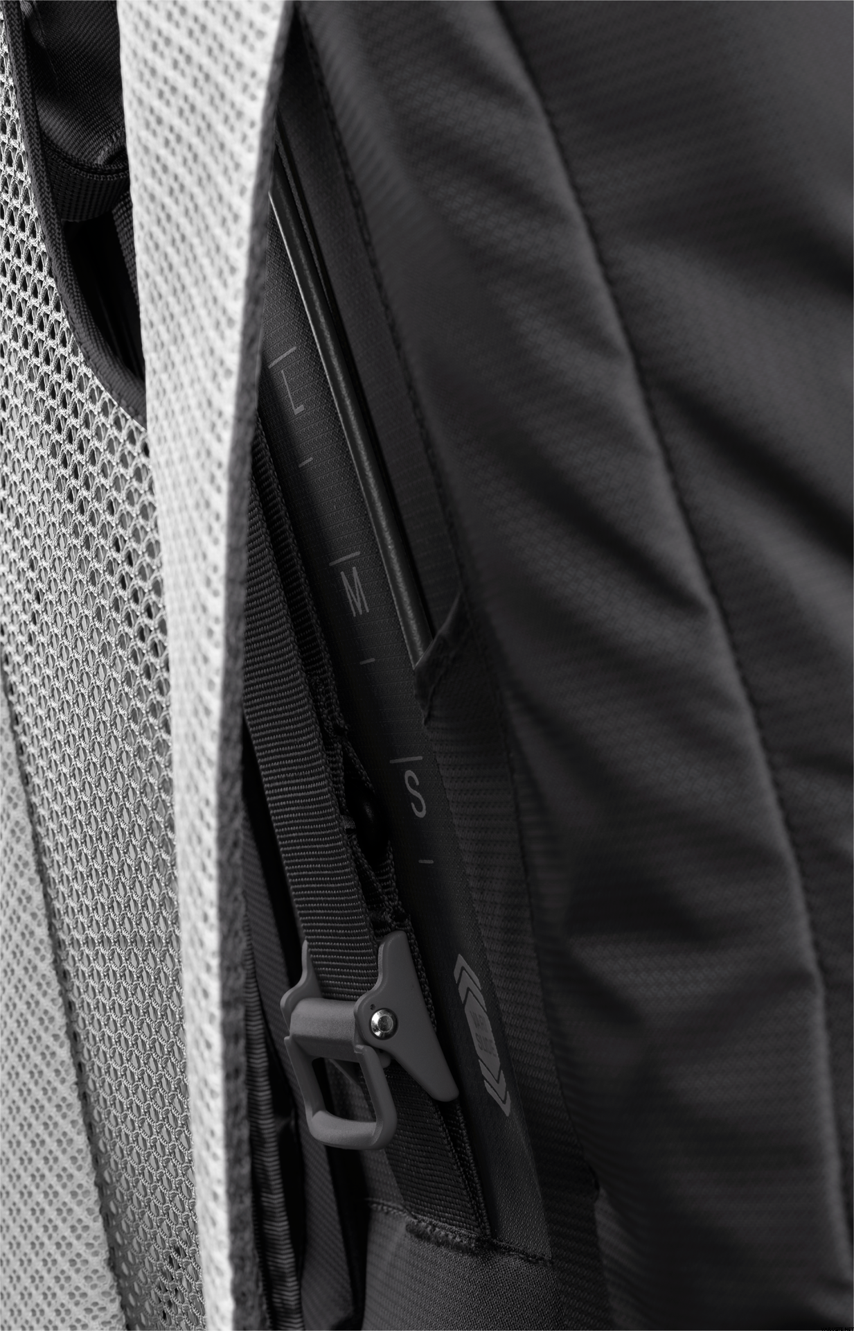 The Aircomfort Sensic mesh back system keeps you optimally ventilated. In order to offer you maximum space and organization possibilities for your equipment, there is a side bellows pocket and a height-adjustable lid (+10 L) in addition to the large front access.