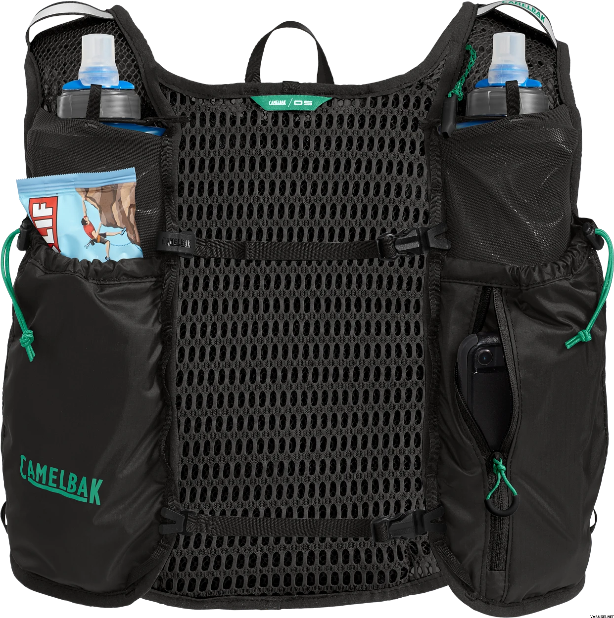 - Snabb åtkomst till vätskebehållare med två Quick Stow-flaskor och en slangfälla för att greppa vattenslangen utan att den behöver lossas
