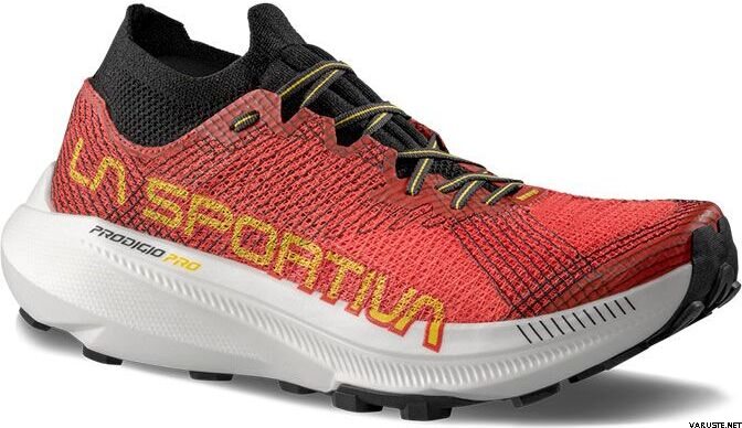 La Sportiva Prodigio Pro traillöpare för kvinnor är designade för ultramarathonlöpare, traillöpare och tävlande som strävar efter att nå sina snabbaste tider. Dessa skor har XFlow Speed-mellansula, som erbjuder exceptionell rebound och stötdämpning, vilket ökar din kraft med varje steg. Den avancerade Power Wire-tekniken och omslagssystemet säkerställer en exakt passform, förbättrad stabilitet och effektiv energiöverföring, vilket ger en viktig boost på långa stigar. Det stickade fodret förbättrar fotledens passform, håller skräp borta samtidigt som det ger extra stöd. Gummi mellanfotsskydd ger självförtroende i utmanande terräng genom att stabilisera och skydda mittfoten, så att du enkelt kan ta dig an varje spåravsnitt.