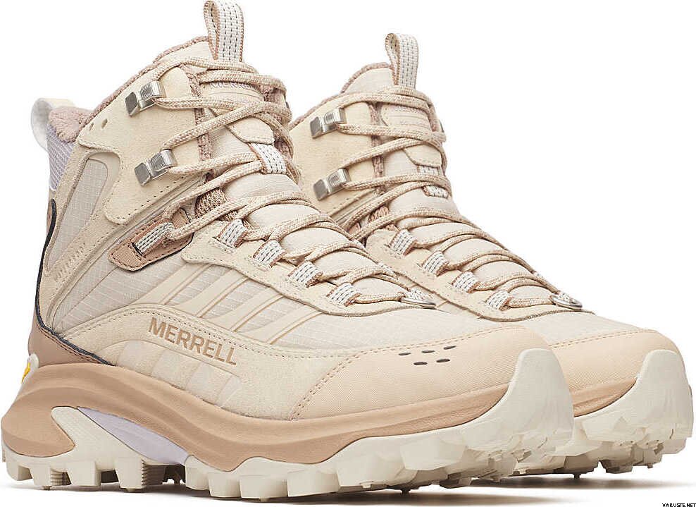 Merrell Moab Speed 2 Thermo Mid Waterproof Womens-kängorna erbjuder exceptionell värme och skydd mot väder och vind utan att lägga till extra vikt. Dessa kängor är designade för vintervandring och har en ovandel i vattentätt mockaläder och nylonripstop, tillsammans med ett vattentätt membran som håller fukt ute. Med 200 gram Primaloft Gold Eco-isolering och en Solarcore Aerogel-innersula ger de enastående värme och flexibilitet, vilket garanterar komfort på långa vintervandringar.