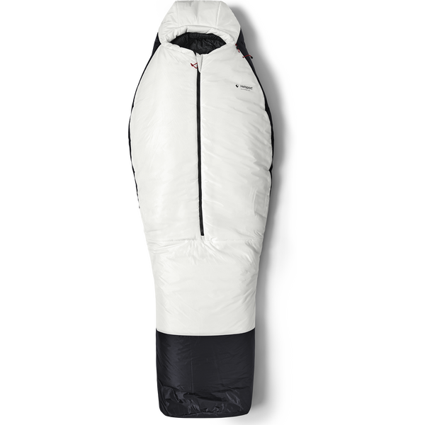 - Dubbelpåsekonstruktionen kombinerar en innerpåse med hög lofthalt i dun och en ytterpåse i syntetmaterial för effektiv isolering i extrem kyla