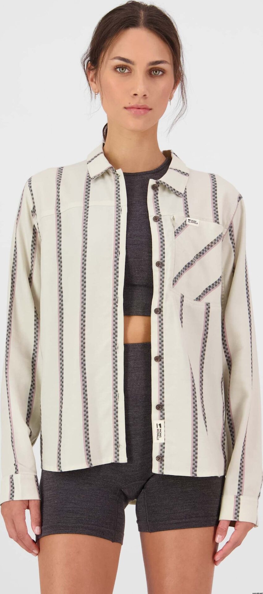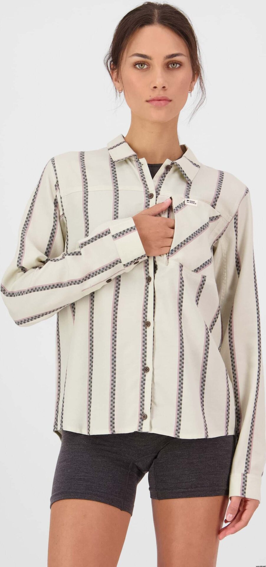 Mons Royale AT Merino Long Sleeve Shirt Womens utmärker sig som en reseklar långärmad skjorta med en naturlig blandning av lyocell och merinoull som hanterar temperaturen, torkar snabbt och motstår lukt. Den klassiska knäppningen passar bra för vardagsbruk, bilresor och längre resor där enkel skötsel är viktigt.