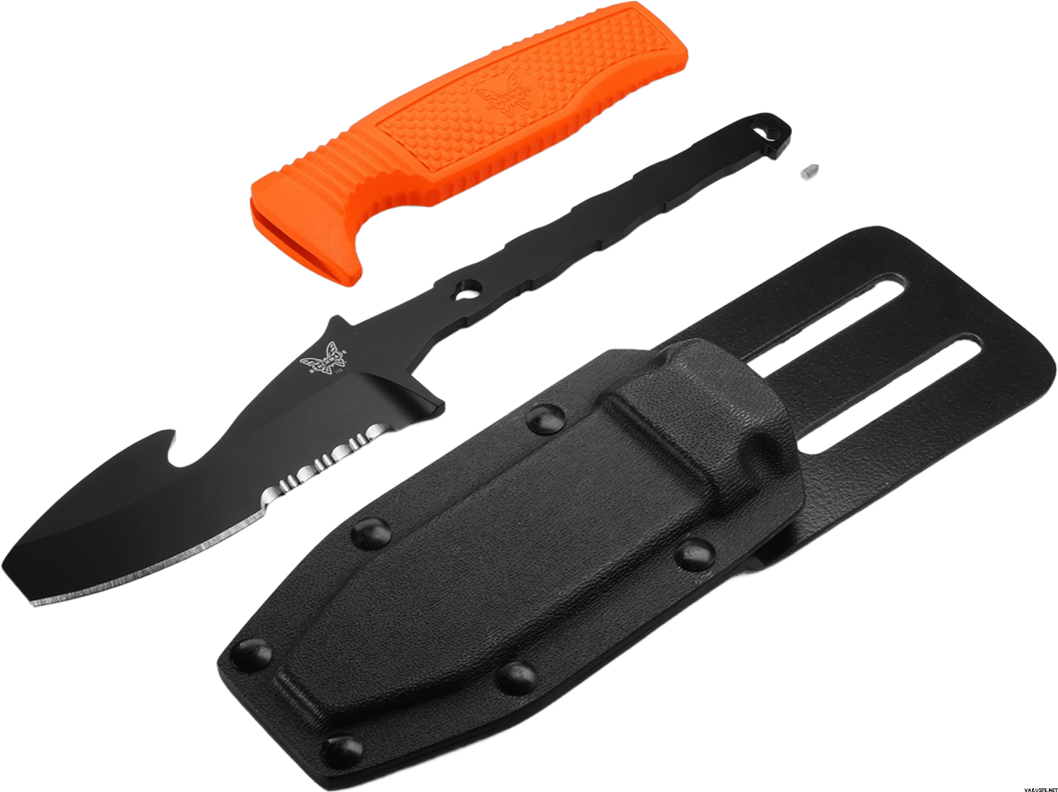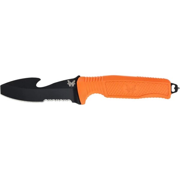 Benchmade H20 Fixed Dive Knife är expertutvecklad för undervattensuppgifter, med ett santoprenehandtag för ett säkert grepp och ett korrosionsbeständigt blad i rostfritt stål N680. Den är designad med en motsatt avfasad slipning, har en delvis tandad egg, en trubbig spets och en integrerad räddningskrok, vilket gör den till ett pålitligt verktyg i olika marina förhållanden.