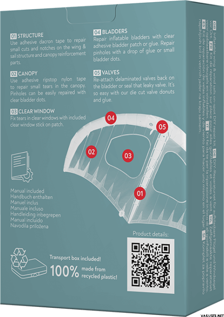Wing Repair Kit har högpresterande lim och specialiserade reparationsplåster för att säkerställa en långvarig och hållbar reparation. Med lättanvända material och tydliga instruktioner kan även förstagångsanvändare reparera sin utrustning med förtroende.
