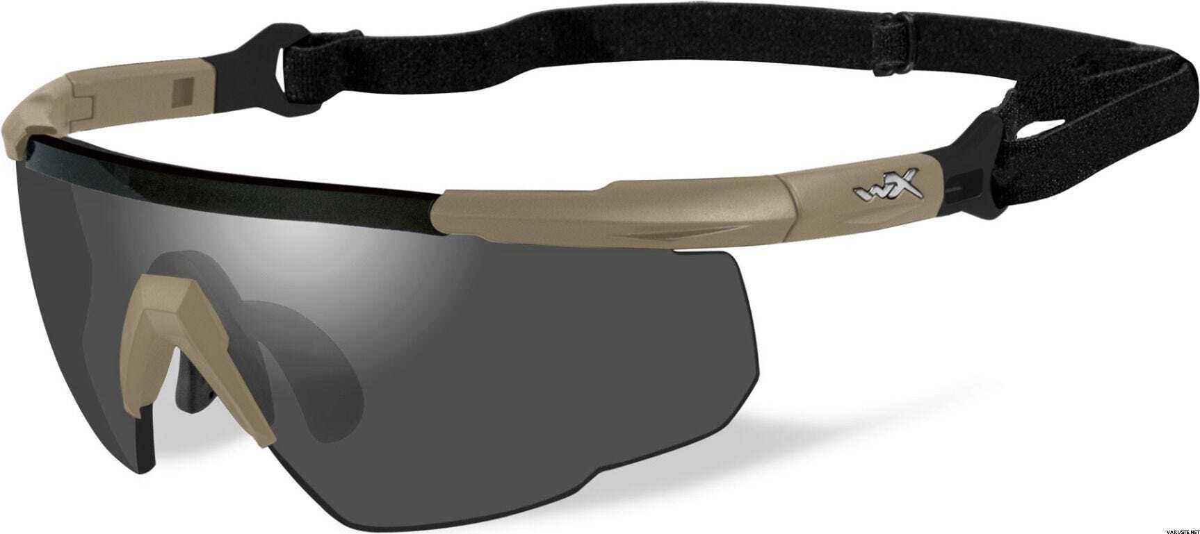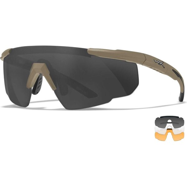 Wiley X Saber Adv Matte Tan, Grey/Clear/Light Rust skytteglasögon och skyddsglasögon erbjuder exceptionell komfort och anpassningsförmåga. Denna modell är känd för att sätta standarden inom skyddsglasögon och kombinerar en halvbågelös båge med justerbara teleskopiska skalmar för optimalt ögonskydd. Användare kan växla mellan skalmar och ett elastiskt band baserat på deras behov. Den 360˚ trådkärniga nässtycket säkerställer en perfekt passform för alla näsformer, och glasögonen är NVG-kompatibla, vilket gör dem lämpliga för en mängd olika aktiviteter.