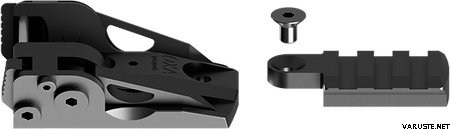 Obs: Picatinny-skenan kommer att placeras framför OXA-skjutstabilisatorn. Se till att pistolens vridfäste för remmen är tillräckligt starkt för att bära vikten av produkterna som är monterade på Picatinny-skenan.