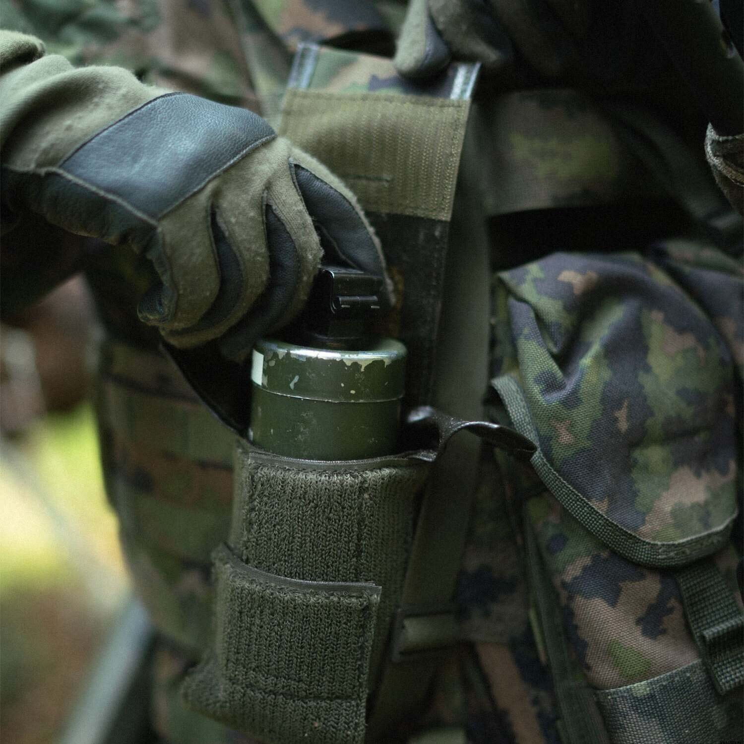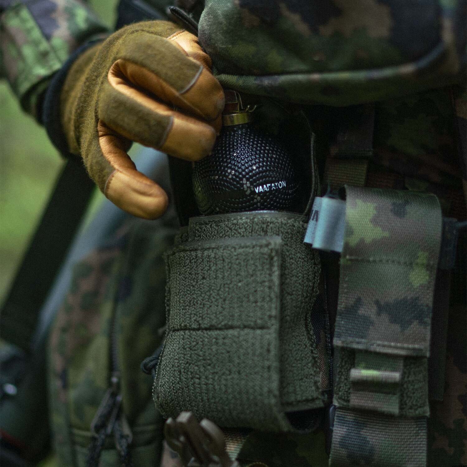 Savotta Frag-Smoke-påsen är en helt justerbar påse utformad för att rymma en mängd olika fragmenterings- och rökgranater. Denna mångsidiga påse är även lämplig för att bära diverse andra föremål, såsom små radioapparater. Den har en flik som är fäst med ett SR-spänne och kardborreknäppning, medan PALS-fästet kan vävas in i robusta bälteshällor.