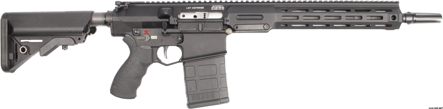LMT® patented monolithic Modular Weapon System, MWS®. The only true monolithic rail platform, milled from a single solid piece of aerospace aluminum forging. It utilizes two locking bolts accessible from the side of the receiver to lock in the barrel extension. This patented technology engages the barrel extension for a full 360 degrees around the extension and makes the barrel removable within seconds with a return to zero of the same barrel. One receiver can utilize numerous barrels of varying length, material, and caliber.
