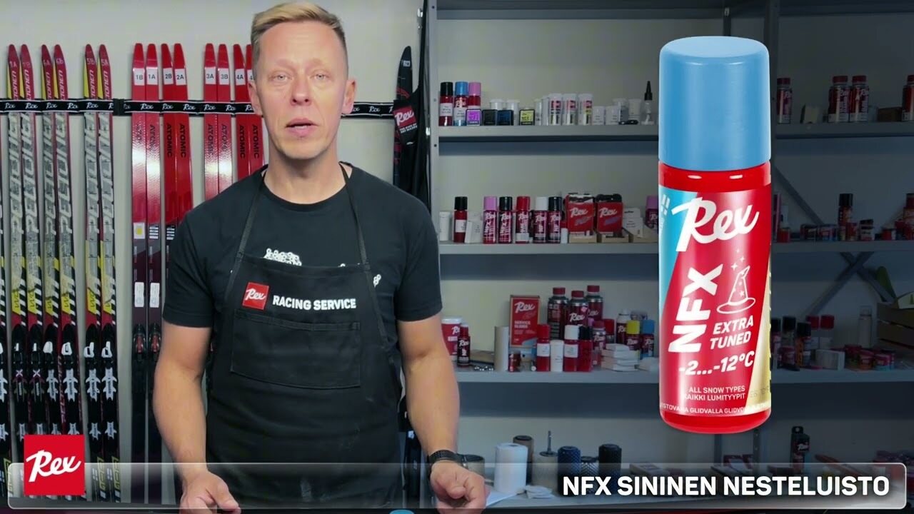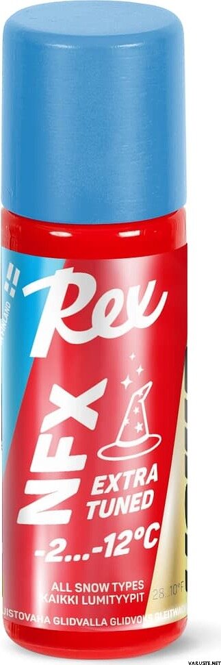 Rex NFX Blue Extra Tuned -2…-12°C 60ml 为竞技滑雪带来卓越性能。这款液态滑行蜡以 NF21 蓝色蜡为基础,并添加了 NFX21 粉末和适量的 OLOS 定型粉。只需使用便捷的海绵涂抹瓶,一次涂抹即可获得竞赛级的滑行体验。先进的 Nano-TK 纳米矩阵技术确保了其持久性和高效性,即使在粉末涂层上也能使用。