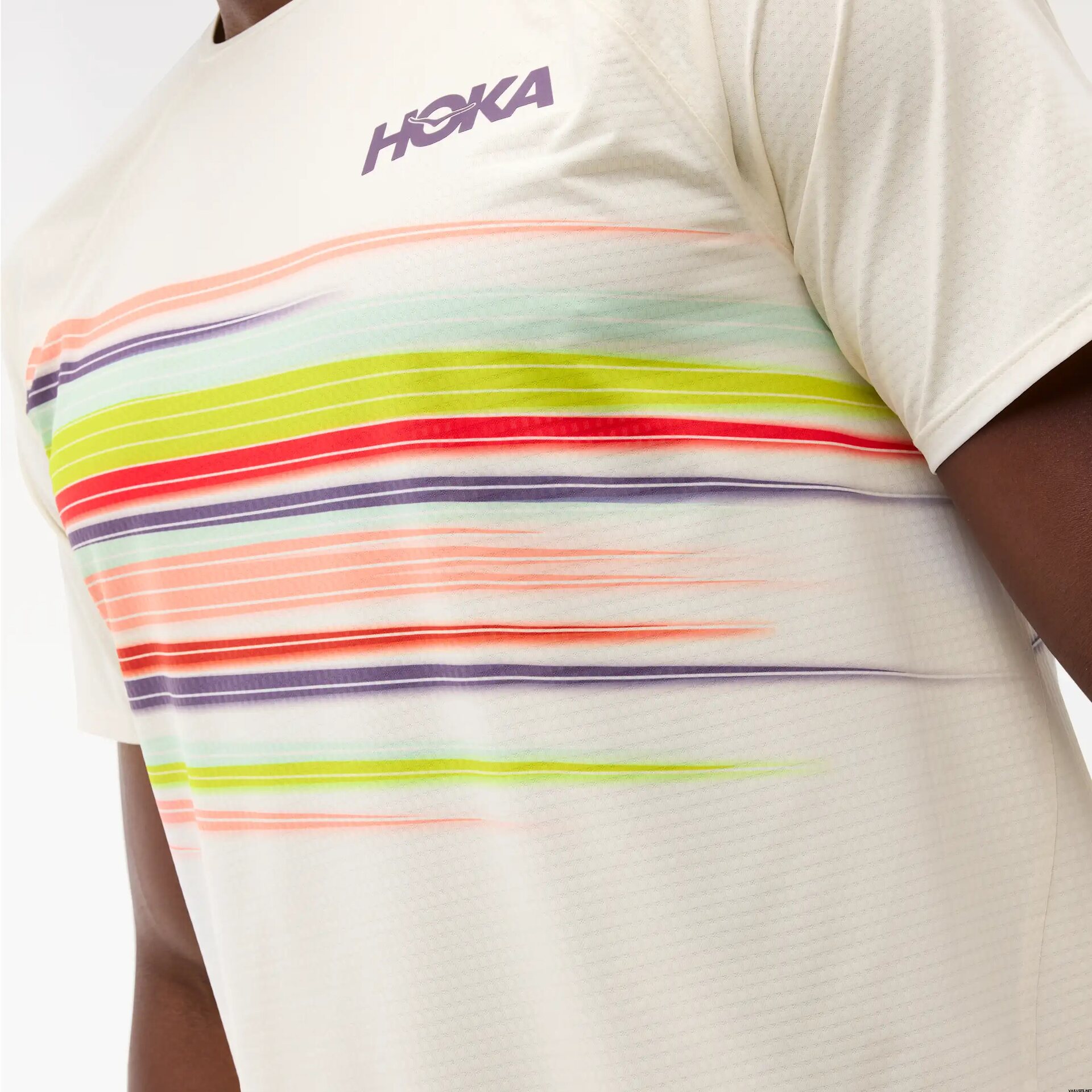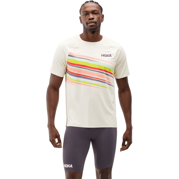 Hoka Race Day 男款短袖越野跑衫是一款轻量级越野跑衫,专为长距离奔跑而设计。它采用便于收纳的领口和速干蜂窝状面料,确保运动中的舒适干爽。HeiQ Mint 技术有助于减少在艰难爬坡和炎热环境下产生的异味。侧边透气孔提升了运动自由度,反光标识则增强了弱光环境下的可见度。
