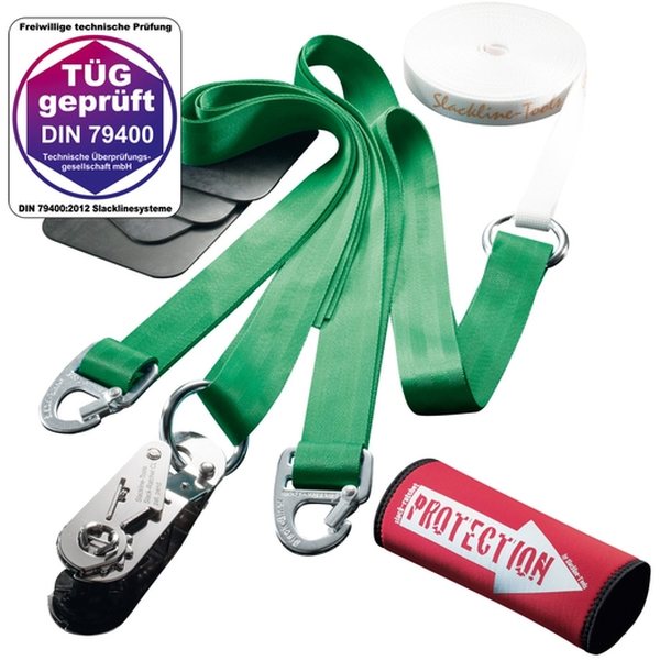Our new attractive beginners kit for the quick and intuitive set up of short Slacklines – officially TÜG-tested according to DIN 79400 slackline-systems